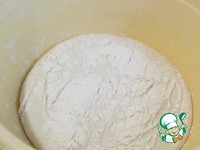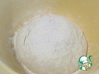 Выкладываем все ингредиенты, КРОМЕ дрожжей, в емкость, где будете замешивать тесто - я замешивала в хлебопечке. Месим 10 минут. Накрываем и даем отдохнуть 10-15 минут. |