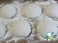 Подошедшее тесто разделить на 7 частей - я разделила на 6. Скатать в шары и дать подойти еще 15 минут. |