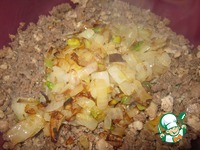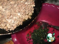Обжаренный фарш перекладываем в глубокую чашку и добавляем к нему 3ст. л. нарезанной зелени |