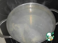 С утра варим бульон из куриных голеней. Время варки ориентировочно около часа. В конце варки вынимаем из бульона куриные голени |