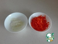 Начинаем готовить заправку для супа. Нарезаем тонкими полукольцами луковицу. На крупной терке натираем морковь. |