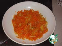 К обжаренному луку добавляем морковь и продолжаем тушить до её мягкости |