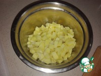 Добавляем к сварившейся фасоли нарезанный кубиками картофель и варим до его полуготовности |