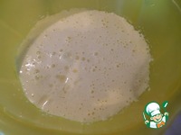 Взбиваем 2 желтка и один белок с медом и сахаром (предварительно отсыпав 3 ст. л. сахара). Недолго, пару минут. |