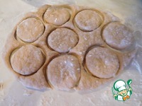Раскатываем тесто в пласт, ок. 1 см. толщиной и вырезаем кружочки. Выкладываем на противень и отправляем в духовку, разогретую до 180*, на 20 минут. |