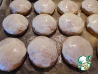 Достаем из духовки наши пряники (они уже поднялись и почти готовы), смазываем их глазурью и отправляем обратно в духовку на 10 минут. |