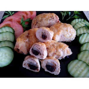Описание: Куриные рулетики с грушей и черносливом - отличный праздничный обед или ужин. Рулеты с такой начинкой получаются ароматными и нежными, а сырЮ натертый сверху, при запекании образует вкусную золотистую корочку. Куриные рулетики с грушей и черносливом готовятся быстро и просто, попробуйте, Вам понравится!)