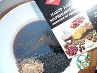 Приготовим маринад: из растительного масла, соевого соуса, кориандра, красного жгучего перца, черного кунжута и приправы для курицы "Forester". |