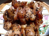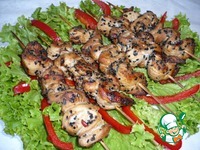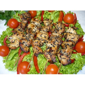 Описание: Вертел по-французски - брошет. Это слово послужило названием для шашлыков, которые делают из маленьких кусочков мяса или курицы. Небольшие кусочки куриной грудки маринуются очень быстро.