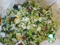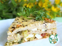Описание: Простой, практически диетический пирог с начинкой их молодой капусты, зелени, отварных яиц, нежной брынзы и вяленых помидор - нежный, со сливочным вкусом, он так пахнет летом - попробуйте!
