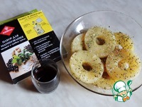 В это же время замариновать колечки ананаса в специях для овощей ТМ Forester, смазав их соевым соусом. |
