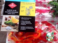 Замариновать кальмары и перец на 1 час в смеси из 2 ст. л. растительного масла, соке ½ лимона и ¼ пачки «Набора для маринования рыбы гриль» от компании Forester. |
