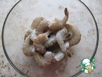 Очистить каждую креветку от панциря, удалить кишечную вену, хвост оставить. |