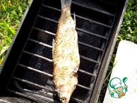 Установить лоток для сбора жира и сока, а сверху решетку. Выложить рыбу. |