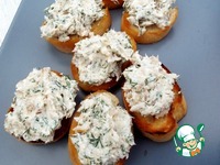 Намазать рыбно-сырной массой кусочки хлеба. |
