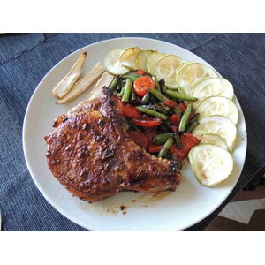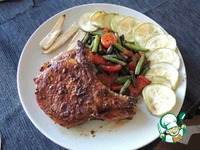 Обжаривать корейку с каждой стороны на медленном огне до золотистой корочки. В качестве гарнира прекрасно подходят овощи. Обжарить их можно в том же маринаде. Приятного аппетита! |