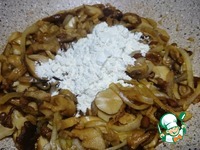 После добавляется мука, все хорошо перемешивается, и, следом, вливается молоко. Жюльен тушится до загустения соуса. |