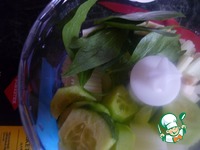 Для соуса все ингредиенты поместить в чашу блендера (для удобства я стебли сельдерея и огурец порезала на кусочки) |
