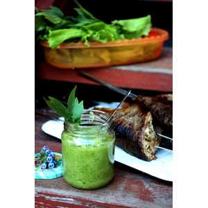 Ну а в этот раз от себя хочу предложить очень приятный зелёный соус из черешкового сельдерея.