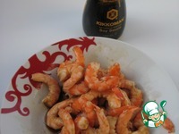 Креветки почистить, замариновать в соевом соусе на 10 минут. |