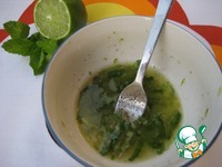 Заправка : смешать 2 ст. л. растительного масла с 1 ст. л. сока лайма, взбить вилкой, добавить мелко порезанные листочки мяты, посолить, поперчить. |