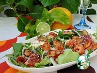Описание: Свежий, сочный и по-летнему яркий салат из креветок, апельсина и тонких колечек лука.