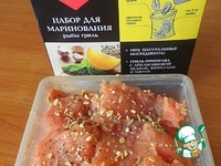 Филе горбуши тонко нарезать, сложить в банку слоями, каждый слой пересыпая приправой "Набор для маринования рыбы гриль" от компании FORESTER, сбрызнуть растительным маслом. Мариновать 30-40 минут. |