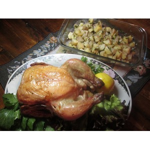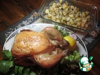 Описание: Этот рецепт совсем несложный и при этом совершенно бесподобный! Цыпленок готовится без добавления масла, но получается очень сочным и красивым. В том месте, где лимон соприкасался с тушкой во время приготовления чувствуется приятная горчинка, придающая пикантность блюду.