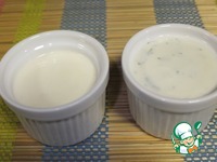 Соус я разделила на две части. Одну часть оставила как есть, а во вторую добавила мелко нарезанную зелень. |