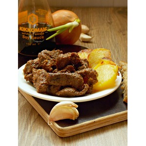 Влить соевый соус от "Kikkoman" и тушить под закрытой крышкой на медленном огне один час. Воды не добавляю обычно, так как жидкости вполне хватает. |