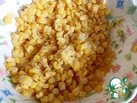 С кукурузы слить жидкость. По рецепту ее нужно помять. Я так и сделала. Но уже потом мне стало ясно, что этого можно и не делать. |