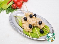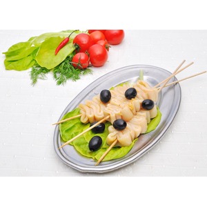 На тарелку кладём салатные листья, на них шампуры с шашлычками, сверху кладём маслины. Приятного аппетита! |