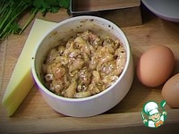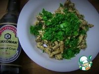 Петрушку мелко порезать и смешать с готовой курицей. |