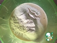 Подогреть слегка воду с молоком, добавить дрожжи, хорошо все помешать. |
