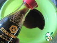 Готовим терпкий соус. Вливаем соевый соус. |