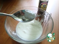Взяла ряженку и погасила в ней соду. Можно взять кефир или кислое молоко. |