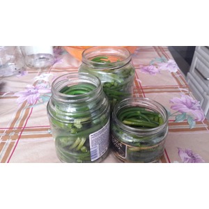 Стрелки еще раз промыть холодной водой и разложить по банкам по плечики. Укладывать плотно. Залить рассолом до самых краев. Прикрыть банки марлей и оставить в прохладном темном месте на 40 суток. Потом накрыть банки резиновыми крышками и хранить в нежарком месте.