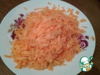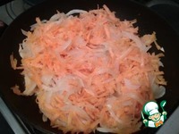 К луку добавить морковь. Все хорошо перемешать и обжарить пару минут. |