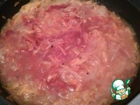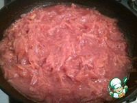 Затем добавить томатную пасту и 2 половника жидкости из кастрюли с картошкой. Все хорошо перемешать, накрыть крышкой и тушить на маленьком огне минут 10 |