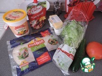 7. Добавить помидор, огурец и сыр. Все красиво свернуть и можно кушать. Можно убрать в холодильник и чуть позже слегка погореть в микроволновке. Приятного аппетита ;-) |