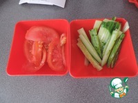2. Огурец и помидорку нарезать брусочками и полукольцами соответственно |