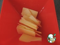 3. Сыр нарезать тонкими кусочками, или как вам захочется, для того. чтобы потом было можно подогреть в микроволновке и он успел расплавиться |