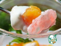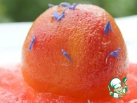 У нас готовы персики и можем сделать два варианта десерта. Вариант 1. На блюдо выкладываем граниту, сверху персик, украшаем по желанию - я добавила несколько лепестков чая. |