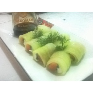 Описание: Всем известно, что роллы очень калорийное блюдо... Самое "тяжелое" в них - это рис. Но если его убрать, то есть заменить, то получится вкусно и легко!