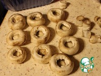 Шампиньоны протереть влажной тряпочкой, убрав грязь. Аккуратно удалить ножки. |