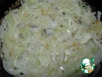 Лук нарезать тонкими полукольцами, обжарить на растительном масле. |