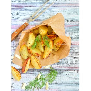 Описание: Золотистые дольки картофеля, жаренные на гриль-противне на углях для гарнира или как самостоятельное блюдо с ароматом дыма, вкусом прованских трав, кардамона и чеснока!