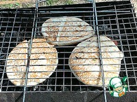 Кабачок и перец нарезать на крупные куски, сбрызнуть растительным маслом, положить на противень-гриль от компании FORESTER, запечь. Противень-гриль имеет удобные ручки и антипригарное покрытие. |