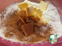 Приготовить посыпку. Масло, сахарную пудру, муку и корицу промять пальцами до образования крошки. |