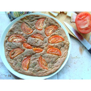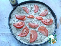 Выложила дольки помидор поверх теста и присыпала тмином и прованскими травами. Поставила в разогретую духовку до т-180 С на 20 минут. |